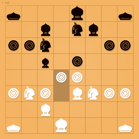 การปูเบี้ยคู่กลางกระดานครับซึ่งตาต่อไปก็เเล้วเเต่จะเดินเอาครับเพราะมีหลากหลายรูปแบบในการเดินเช่นกินให้หมดหรือเดินโคนมาเสริม หรือถอยเม็ด เเต่จุดหลักของ สีขาวคือการใช้เบี้ยบุกเป็นคู่นะครับหรือไม่ก็พยามบุดตรงกลางกระดาน เพราะถ้าสังเกตเบี้ยฝ่ายดำจะอยู่ริมกระดานหมดเพราะฉะนั้นเป็นเรื่องง่ายมาที่จะบุกจากกลางกระดาน สำหรับสถิติที่แอดมินเก็บมาบอกได้เลยว่า 0.687หรือ68.7%นั่นเองซึ่งผมจะขอตีเป็น 7/10เลยนะครับ สาเหตุที่เป็นแบบนี้ก็อาจจะด้วยหมากที่เหลือเท่ากันทั้งสองฝ่ายเเค่สีขาวเป็นต่อรูปหมากเท่านั้นเอง โอกาสเสมอมีสูงมากครับถ้าฝ่ายขาวรักษาทรงเเละรูปแบบการบุกไม่ได้